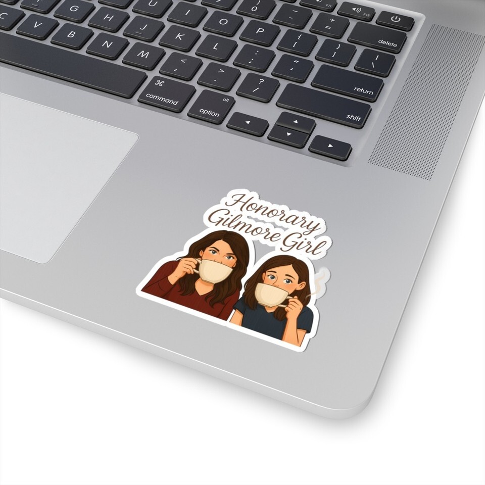 Gilmore Girls, two steaming mugs, and a wink to cozy morning rituals ? this glossy kiss-cut sticker captures that warm, caffeine-fueled bond. The illustration shows Lorelei and Rory sipping coffee with playful, knowing expressions and the phrase ?Honorary Gilmore Girl? floating above in hand-lettered script. Stick it on a laptop, journal, or water-resistant surface to carry a touch of small-town diner chatter and late-night TV camaraderie wherever you go. The finish catches light and keeps colors popping, so the scene stays vibrant and inviting through daily wear.