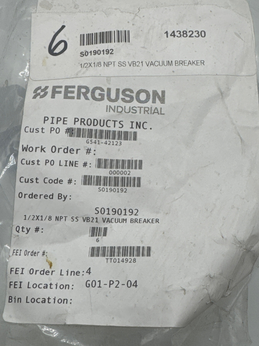 Spirax Sarco VB21 Vacuum Breaker 1/2" X 1/8" NPT SS Lot of 6