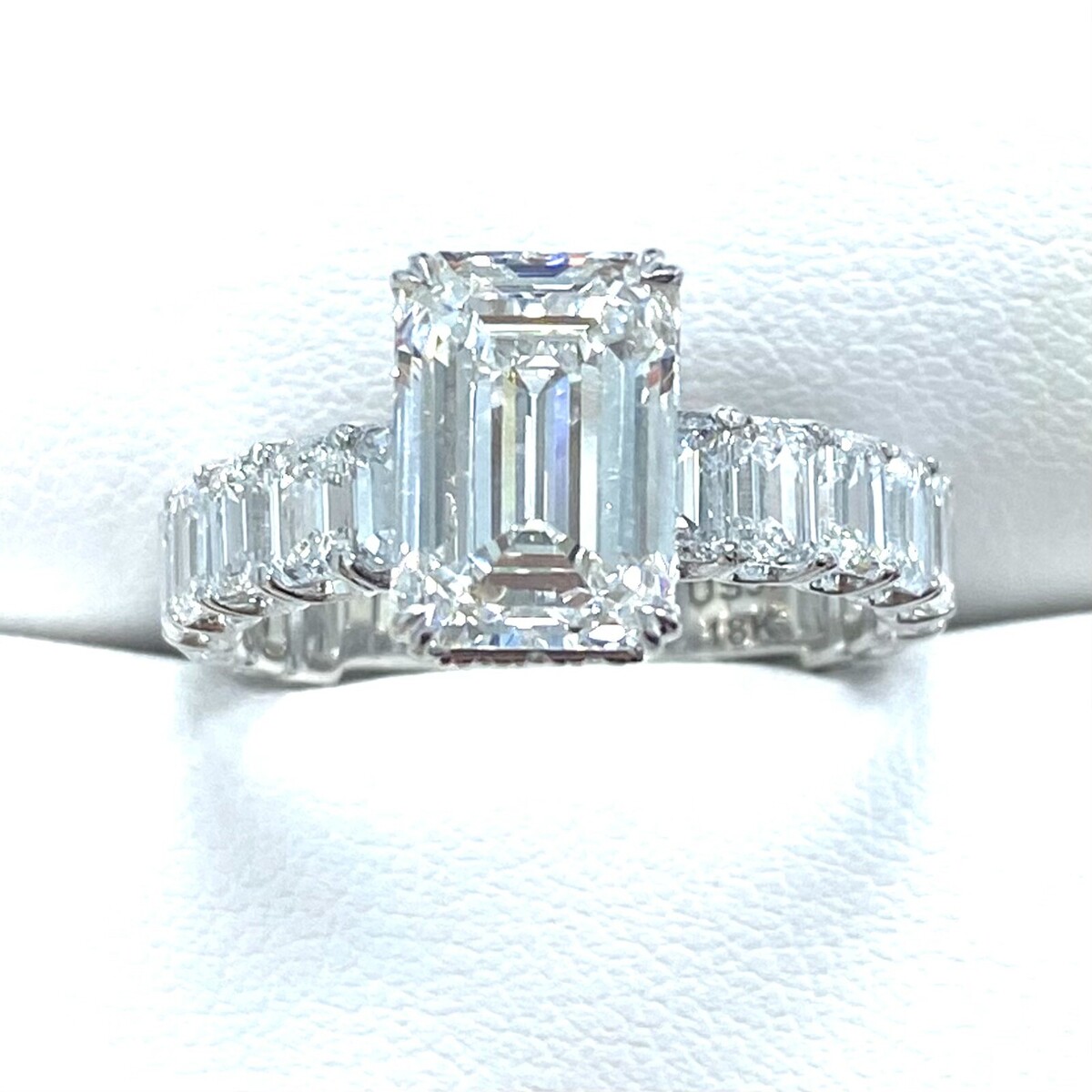 Verlobungsring IGI 3,05 ct E-VVS2 Lab-Grown-Diamant im Smaragdschliff 18 Karat 6,38 ctw