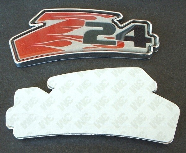 This listing is for two APC flamed RED Z24 emblems as pictured with msrp of $24 apiece - cat # 108402. These emblems are a GM Official licensed product!! These emblems are not only for the fenders. They can be placed in any place your imagination creativity can come up with.