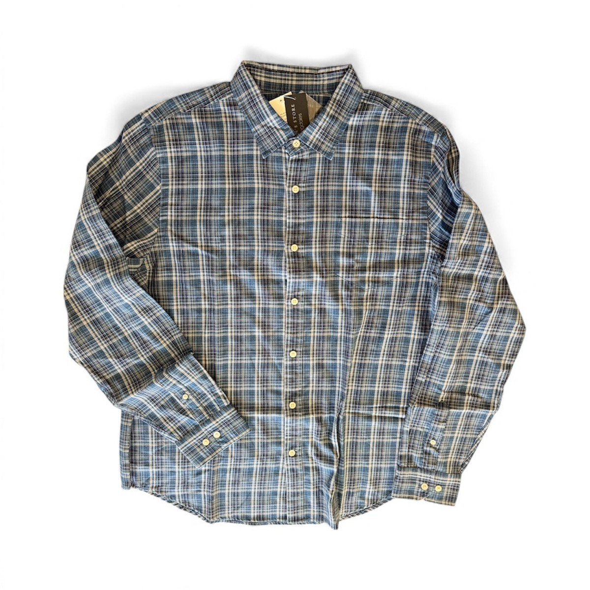 Do you think it is time to elevate your casual look up to the next level? Check this offer out! Brand New Authentic, The Men's Store Twill Plaid Classic Fit Shirt Blue Raisin. Original retail $98. Act now before it's too late. Why pay full retail! Check out my line up of pants to go with your new shirt.