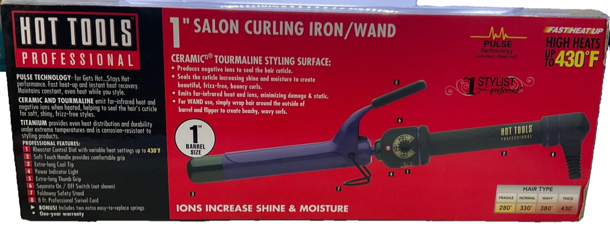 Hot Tools Professional 1" Salon Curling Iron/Wand Ceramic Tourmaline #2181