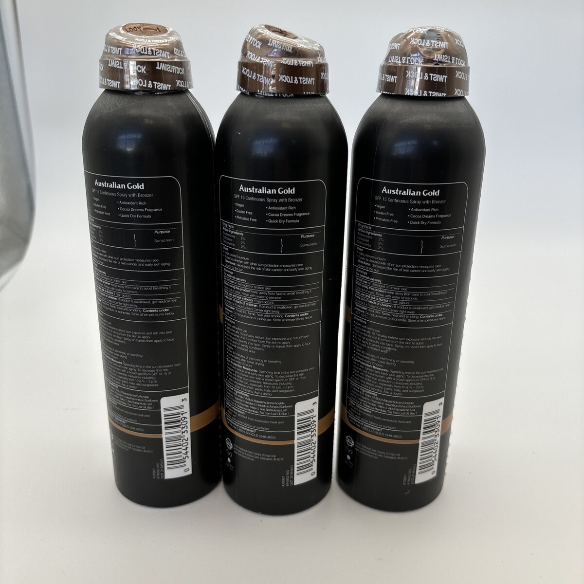 3x Australian Gold SPF 15 Continuous Spray Sunscreen Instant Bronzer Tanner 6 oz