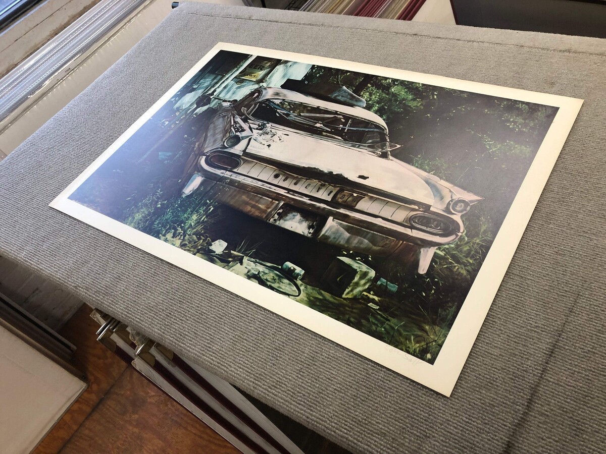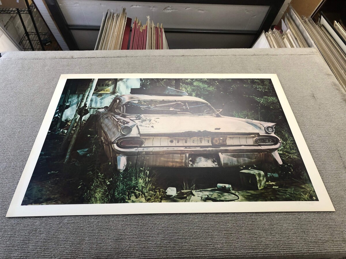 Sku: YY0468-BArtist: John SaltTitle: Pioneer PontiacYear: 1977Signed: YesMedium: Offset LithographPaper Size: 19.5 x 28.5 inches ( 50 x 72 cm )Image Size: 17.5 x 26.5 inches ( 44 x 67 cm )Edition Size: 350Framed: No: Inquire with our experts for framing suggestions.Condition: A: MintSupplemental Condition Information: Light foxing along top and left hand edges. Some small creases in top edge. Small blemish in image, reaches into margin in upper right hand corner of image. Additional Details: This limited edition print, titled Pioneer Pontiac, was created by the acclaimed artist John Salt in 1977. Published by OK Harris, this piece is part of a limited edition of 350 prints, each signed by the artist, underscoring its exclusivity and collectible value. John Salt is renowned for his photorealistic style, and Pioneer Pontiac exemplifies his meticulous attention to detail and skill in capturing the essence of American car culture. The artwork features a beautifully rendered image of a vintage Pontiac, set against a backdrop that evokes a sense of nostalgia and timelessness. Salt?s precise technique and use of color bring the scene to life, highlighting the textures and reflections that define the car?s surface.