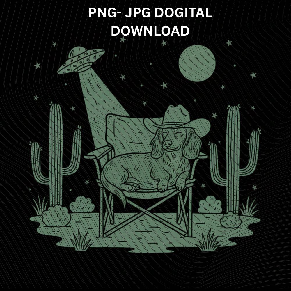 Cowboy Dachshund Under UFO Png Cute Alien Dog Western Art, Space Desert Graphic
