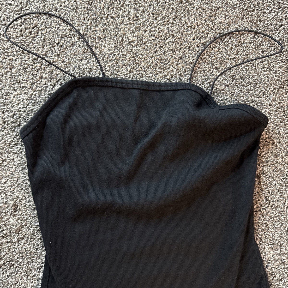 Wild Fable Ribbed Bodysuit Women Small Black Thin Straps Snap Button (S) Small