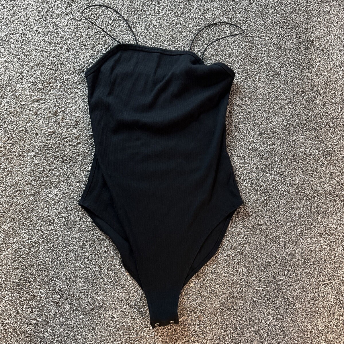 Wild Fable Ribbed Bodysuit Women Small Black Thin Straps Snap Button (S) Small. Condition is Pre-owned - Good. Shipped with USPS Ground Advantage.
