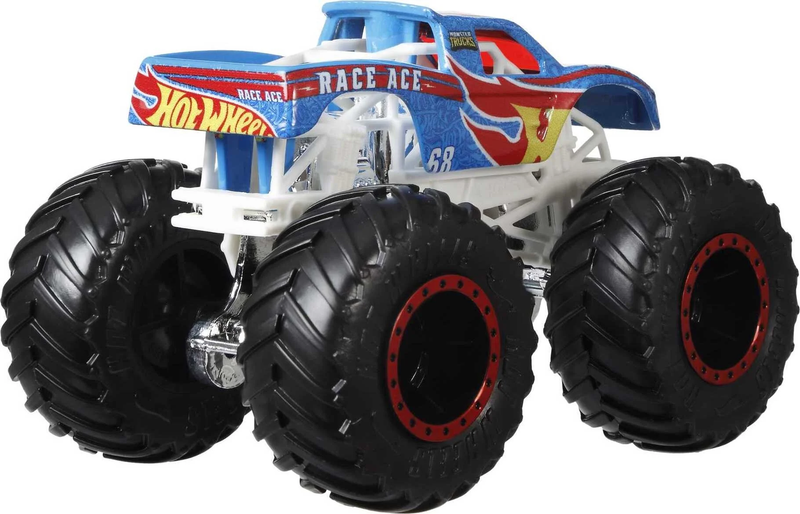 Just like the real-size trucks in the live show, these heroic Hot Wheels Monster Trucks have unique and outrageous personalities that make them entertaining and awesome. Each 1:64 scale truck is a fan-favorite with features kids know and love. With eight star-powered Monster Trucks in one pack, it's an instant collection and inspires total mayhem right out of the box! Recreate epic destruction from the Monster Trucks Live show with such characters as Race Ace, Bone Shaker and Tiger Shark, or let this multipack be an introduction to all the smashing and crashing that Monster Trucks has to offer. Colors and decorations may vary.