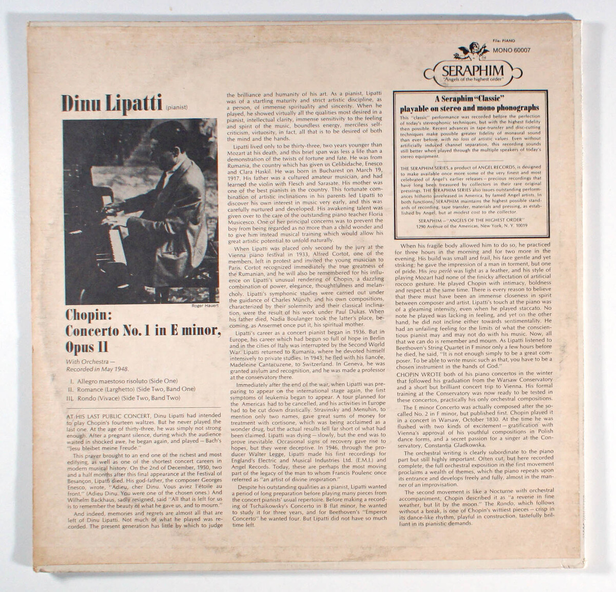 Dinu Lipatti - Chopin: Concerto No.1 in E Minor (1966) Vinyl LP Classical