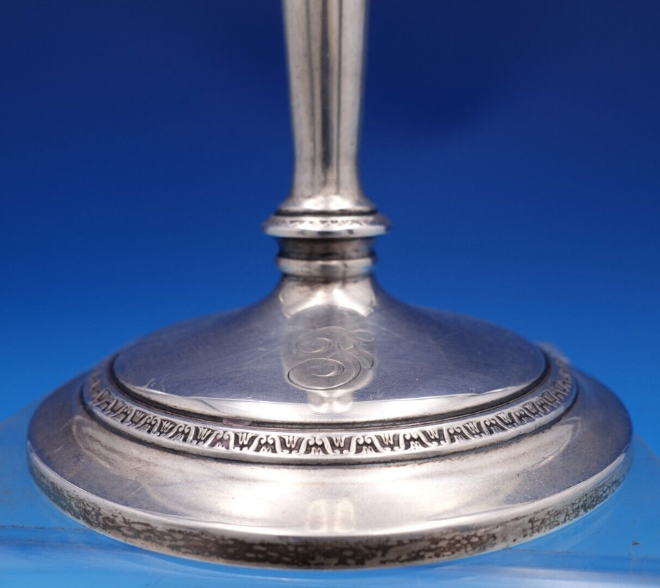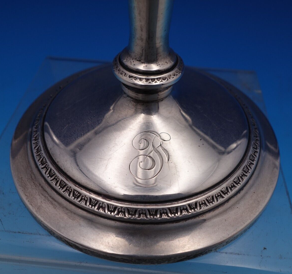 Beautiful Wedgwood by International sterling silver candlestick pair marked #N23. The candlesticks measures 12" tall and are weighted. They are monogrammed on the top of the bases (see photos), and are in good estate condition as shown. Outstanding!