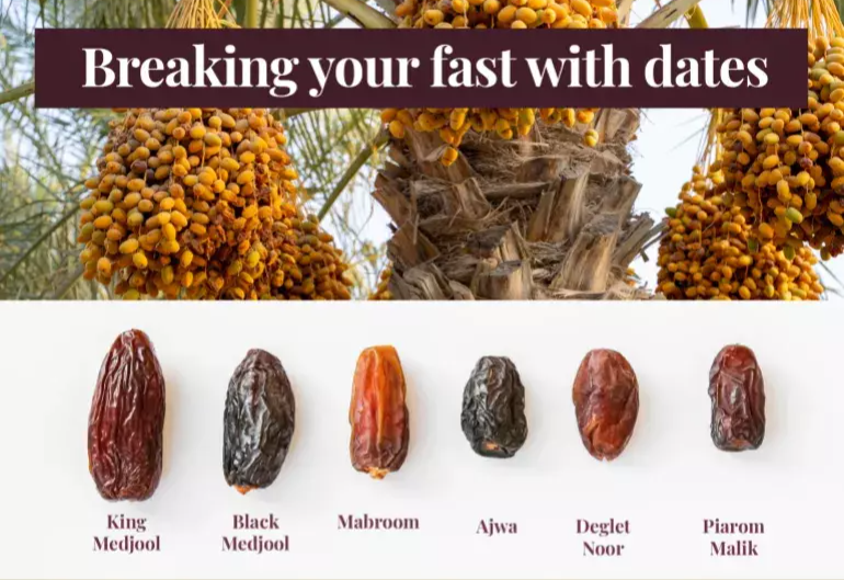 .Braking the fast with dates has always been a Ramadan tradition. In Hadith literature it is written that the would break his fast with ripe dates before he would pray. Therefore, eating dates during this time has a spiritual significance. Dates have a long history in the Middle East as they have been cultivated in the area for thousands of years. The hot, arid climate provides ideal conditions for date palms to thrive.
