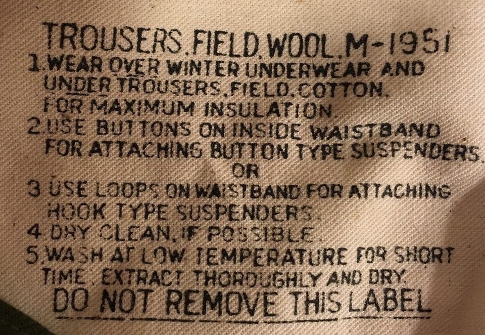 Our MILITARY PANTS are 100 percent Authentic M-1951 WOOL TROUSERS, we take pride in selling some of the most Authentic Military Gear known in the Industry, Each Item has a size Label in each one of them , also each pair of our pants can be altered to fit your exact needs as well.