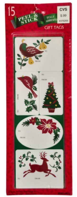 Paper Magic Group CVS Vintage Christmas 15 Peel & Stick Adhesive Gift Tags NEW