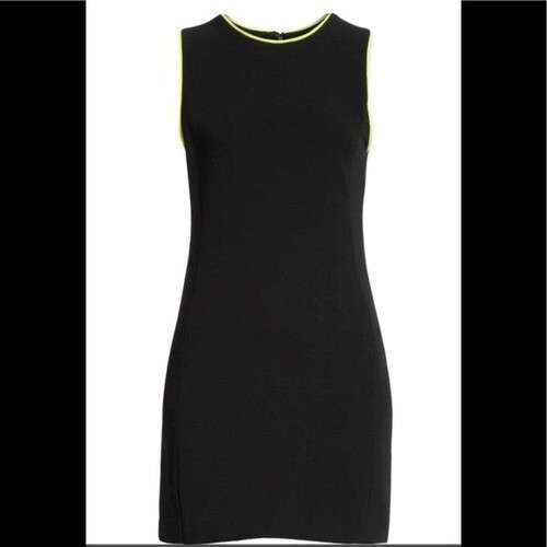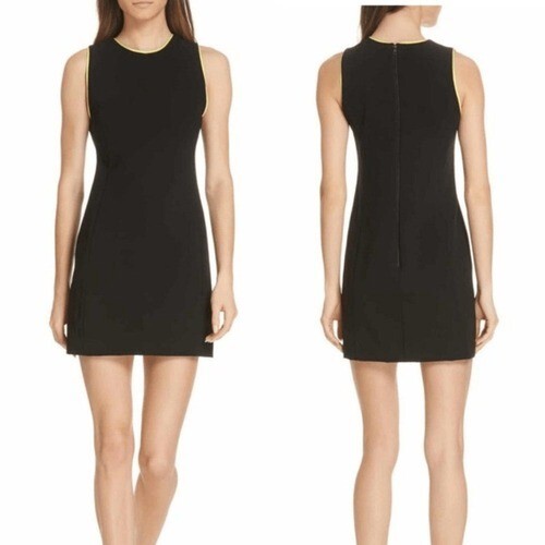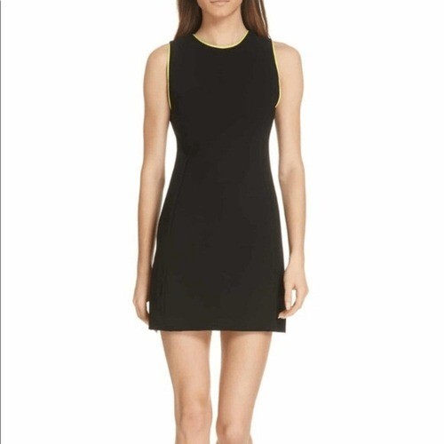 Stacey Bendet gives a subtle nod to the season's brightest trend with the neon piping trimming this sleek LBD cut to show a long length of leg.