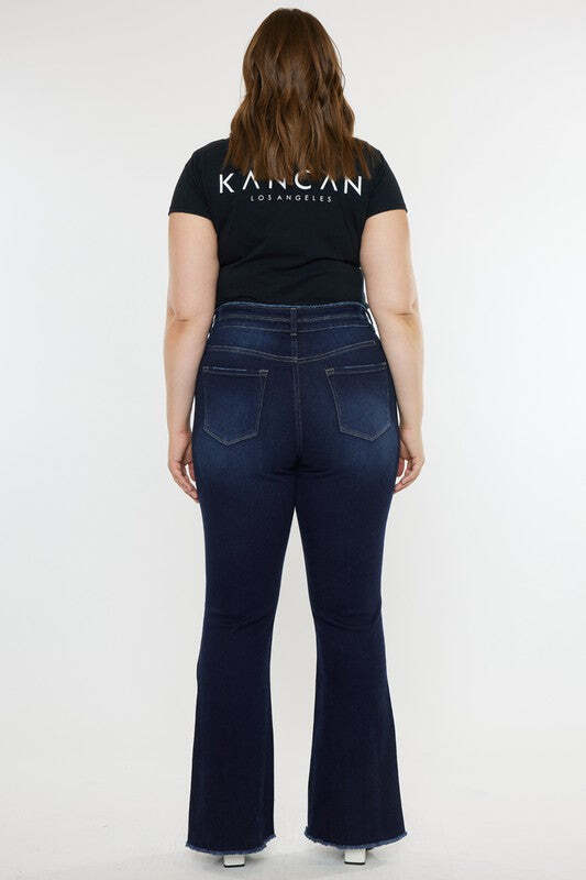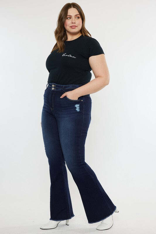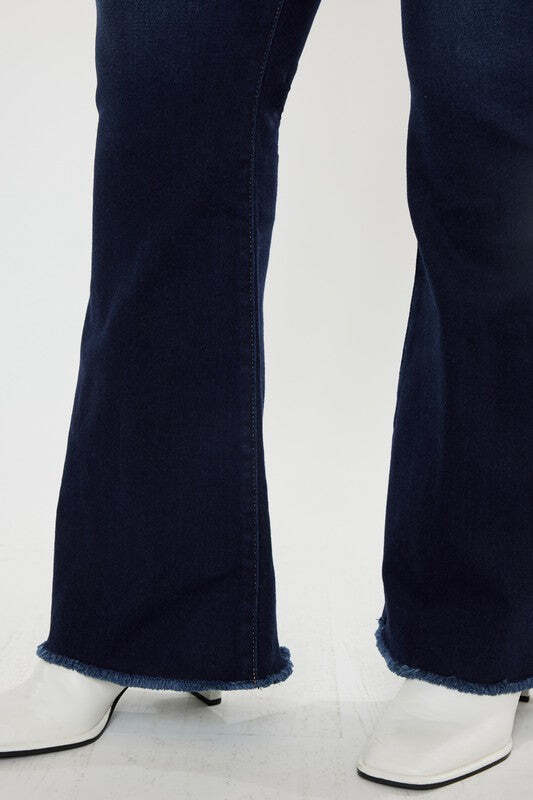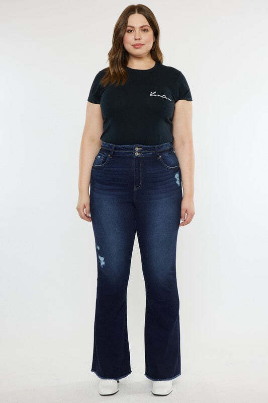 Plus High Rise Double WB Fray Hem Flare Jeans