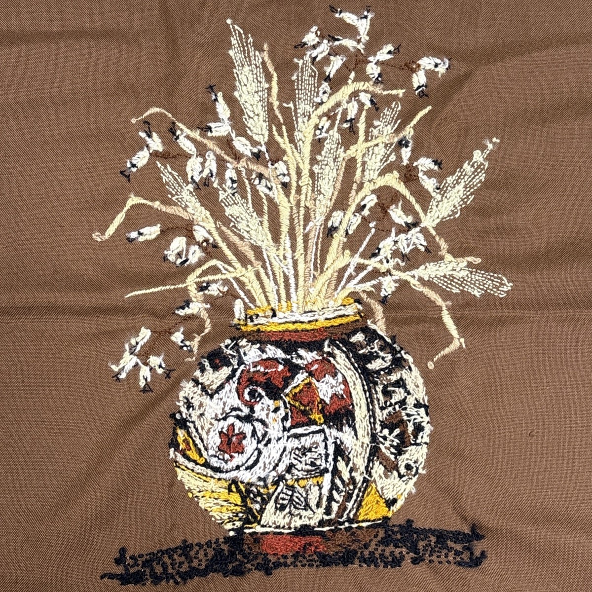 Indian Heritage Embroidered Crewel Aztec Vase Grasses