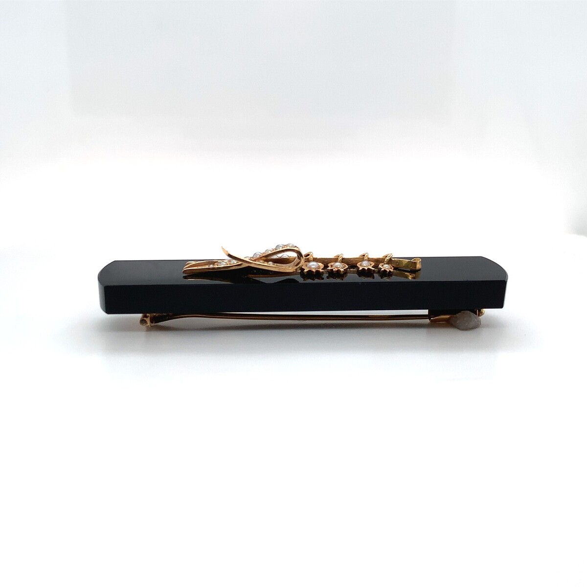14k yellow gold black onyx bar pin with applied lily of the valley