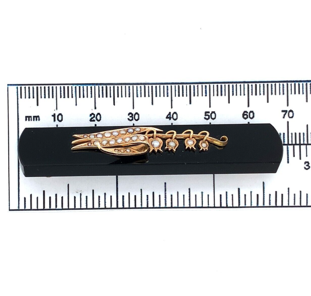 Victorian 14k Gold Black Onyx and Pearl Bar Pin Lily of the Valley (#J6251)