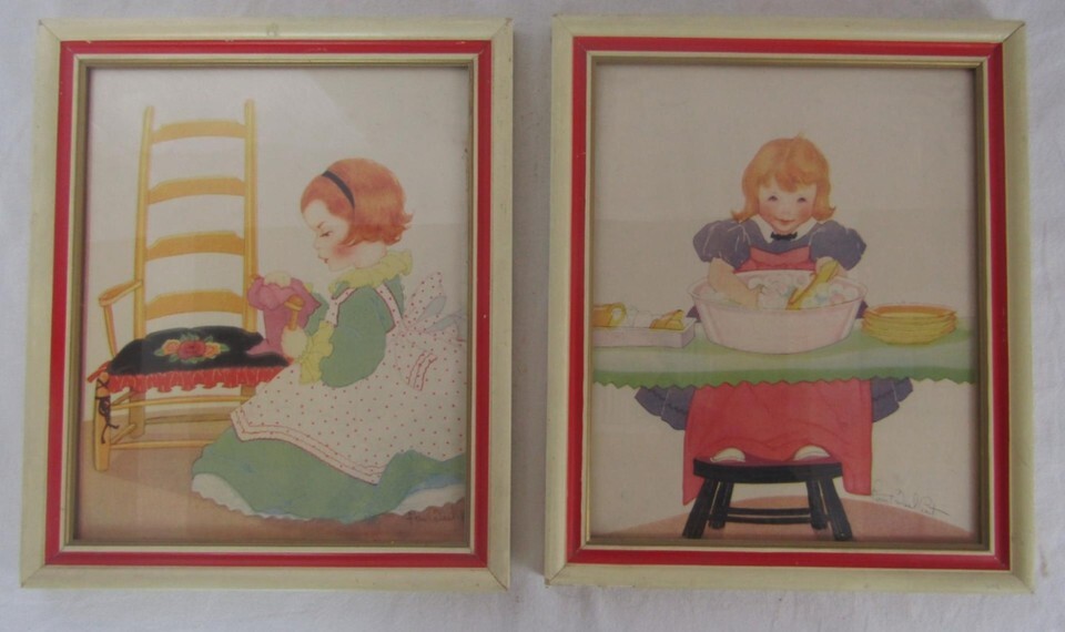 VINTAGE 1930s FERN BISEL PEAT SET OF 2 MISS JANE PRINTS FRAMED