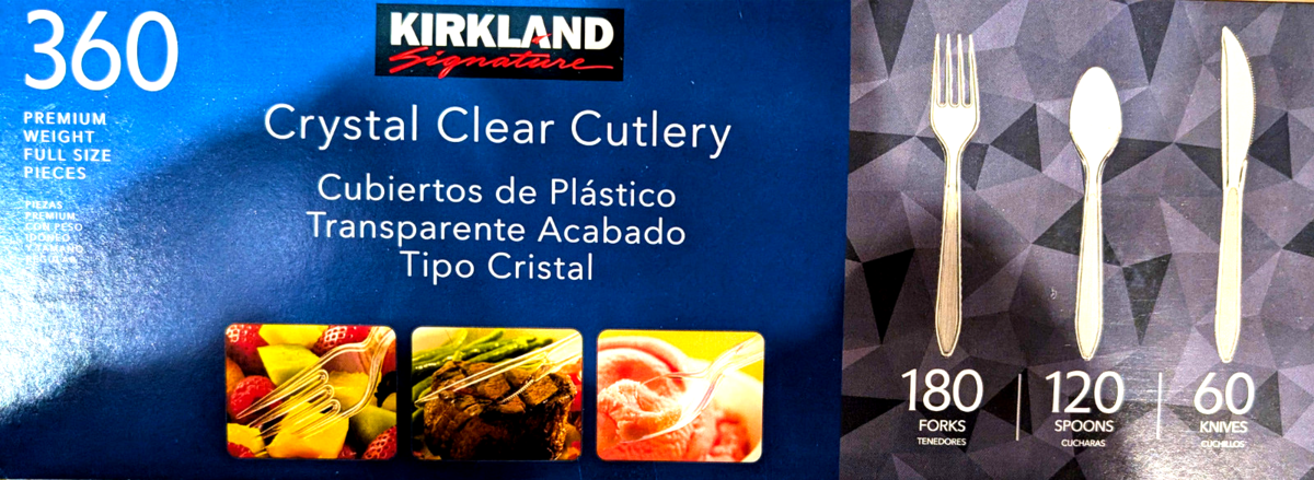 Kirkland Signature Crystal Clear Cutlery 180 Forks 120 Spoons 60 Knives 360 Pcs