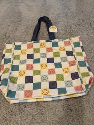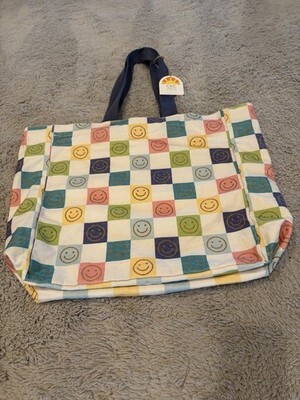 C&C California Home Large Canvas Tote Colorful Smiley Faces NWT