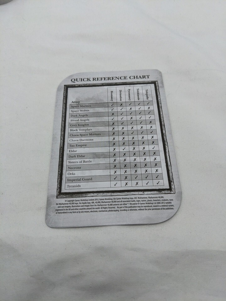 Warhammer 40K Psychic Disciplines Deck. Combined Shipping (for USA Customers Only)