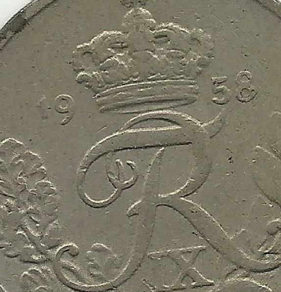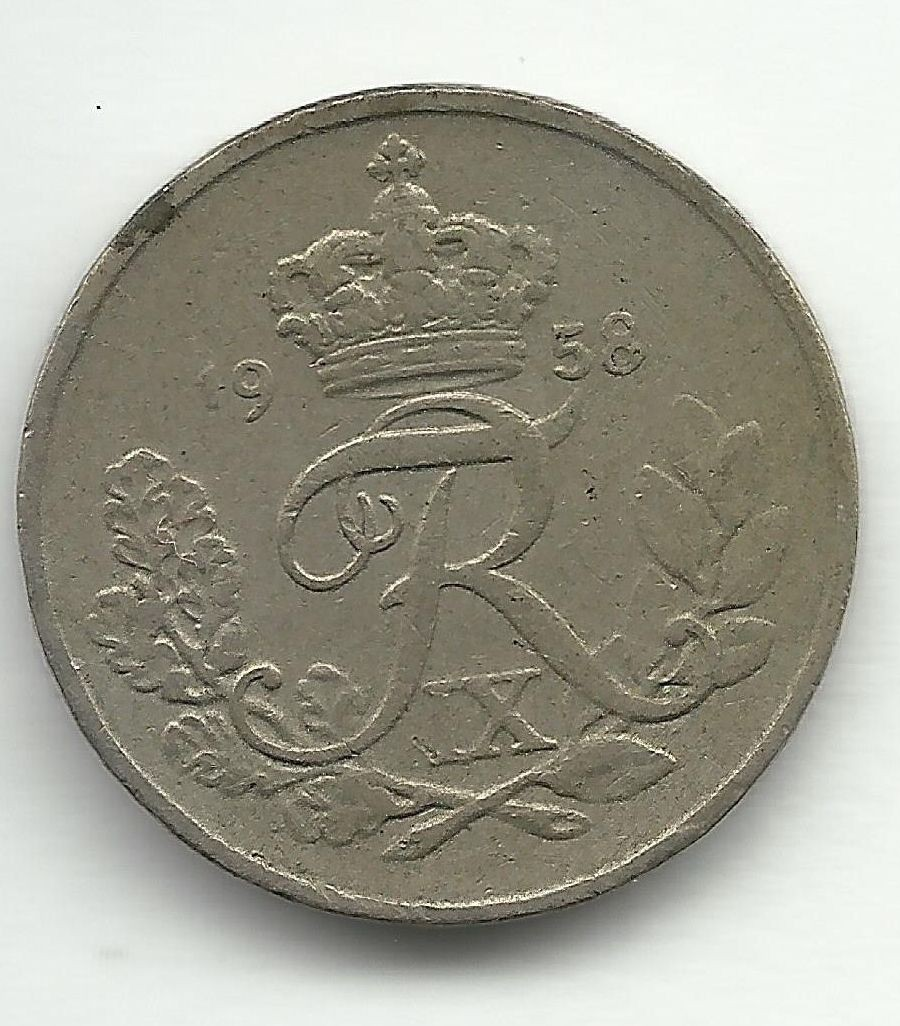 1958 Denmark 10 Ore Coin w/ King Frederik IX Monogram Danmark