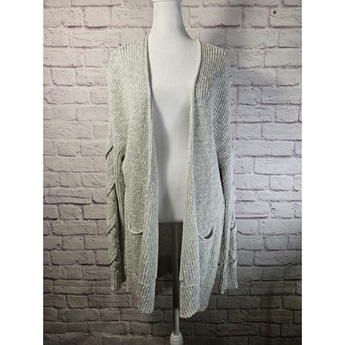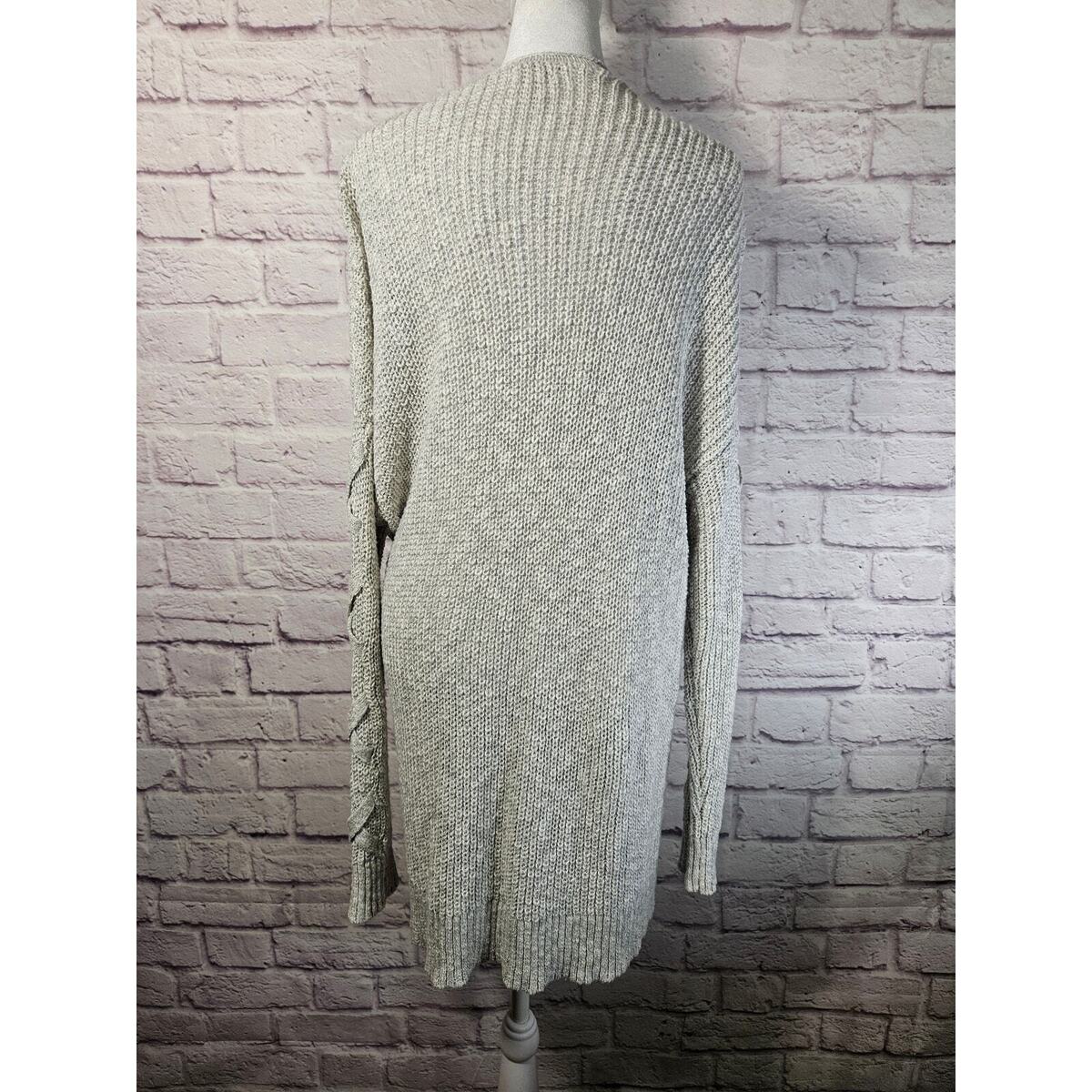 Mossimo Women's Open Front Cardigan Gray CrissCross Sleeves Pockets XL
