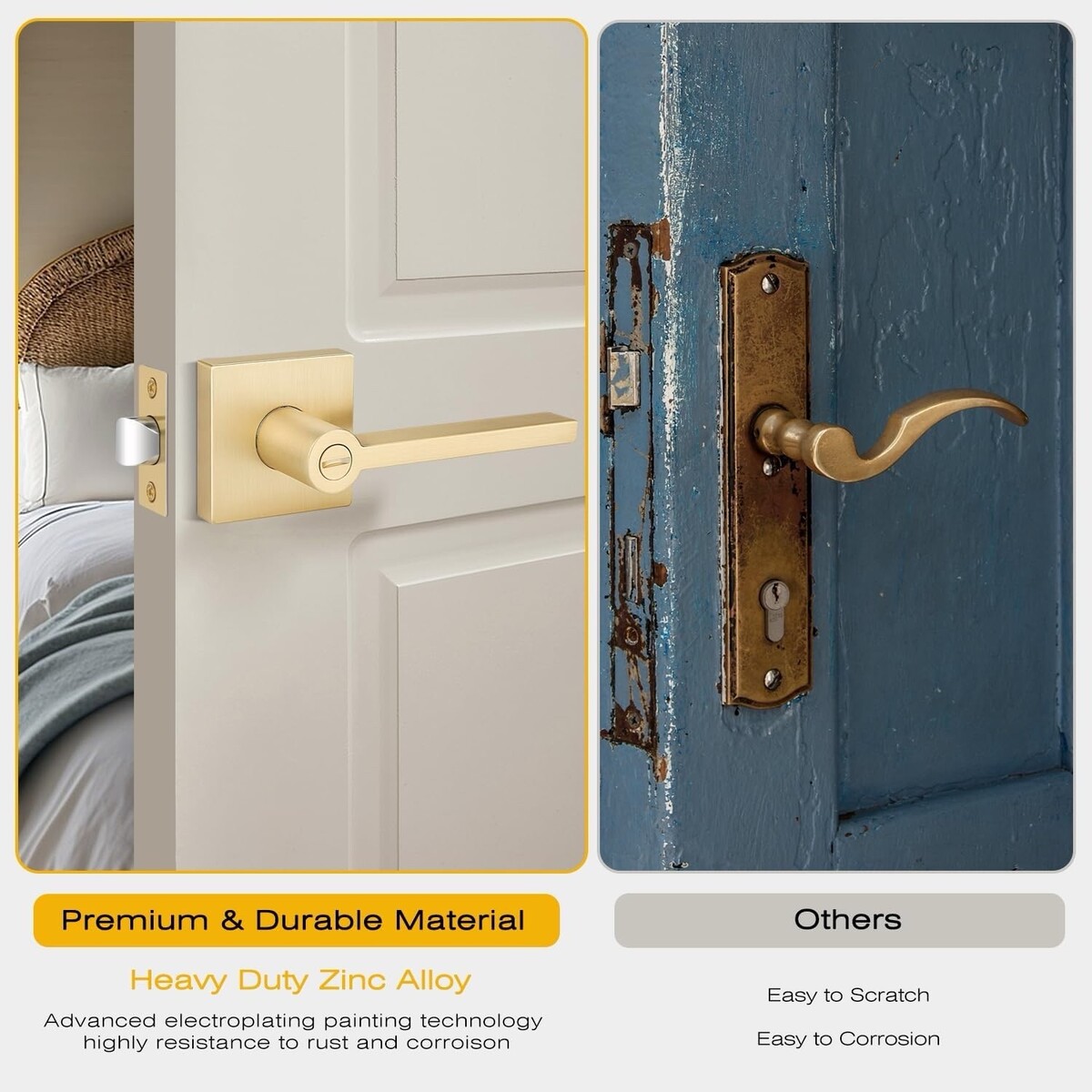 Solid zinc-alloy construction provides long-lasting durability, while the brushed gold finish adds a sleek, modern look. Fits both left-handed and right-handed doors and installs in minutes with the included hardware.