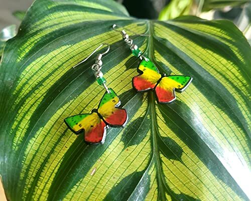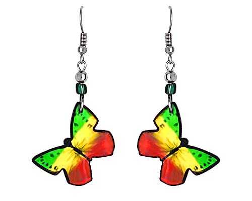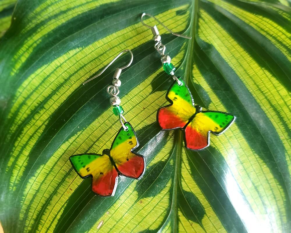 Rasta Butterfly Animal Graphic Dangle Earrings - Jamaican Fashion Handmade Jewel