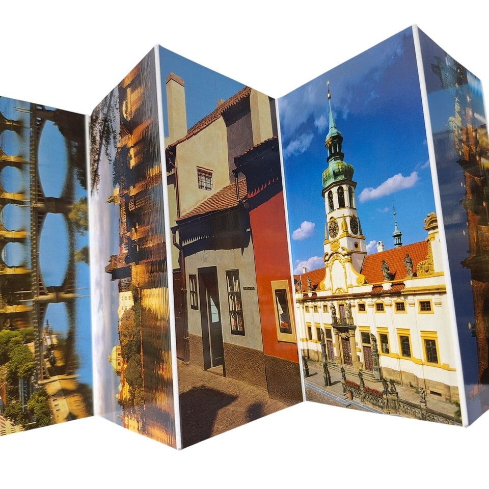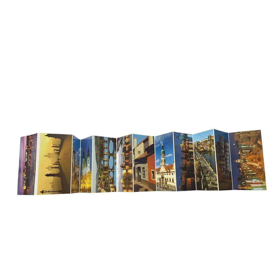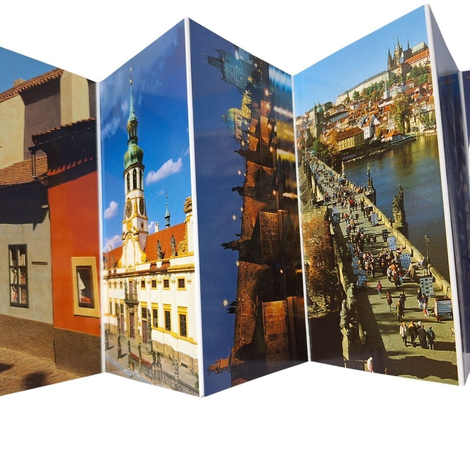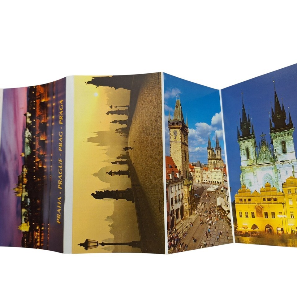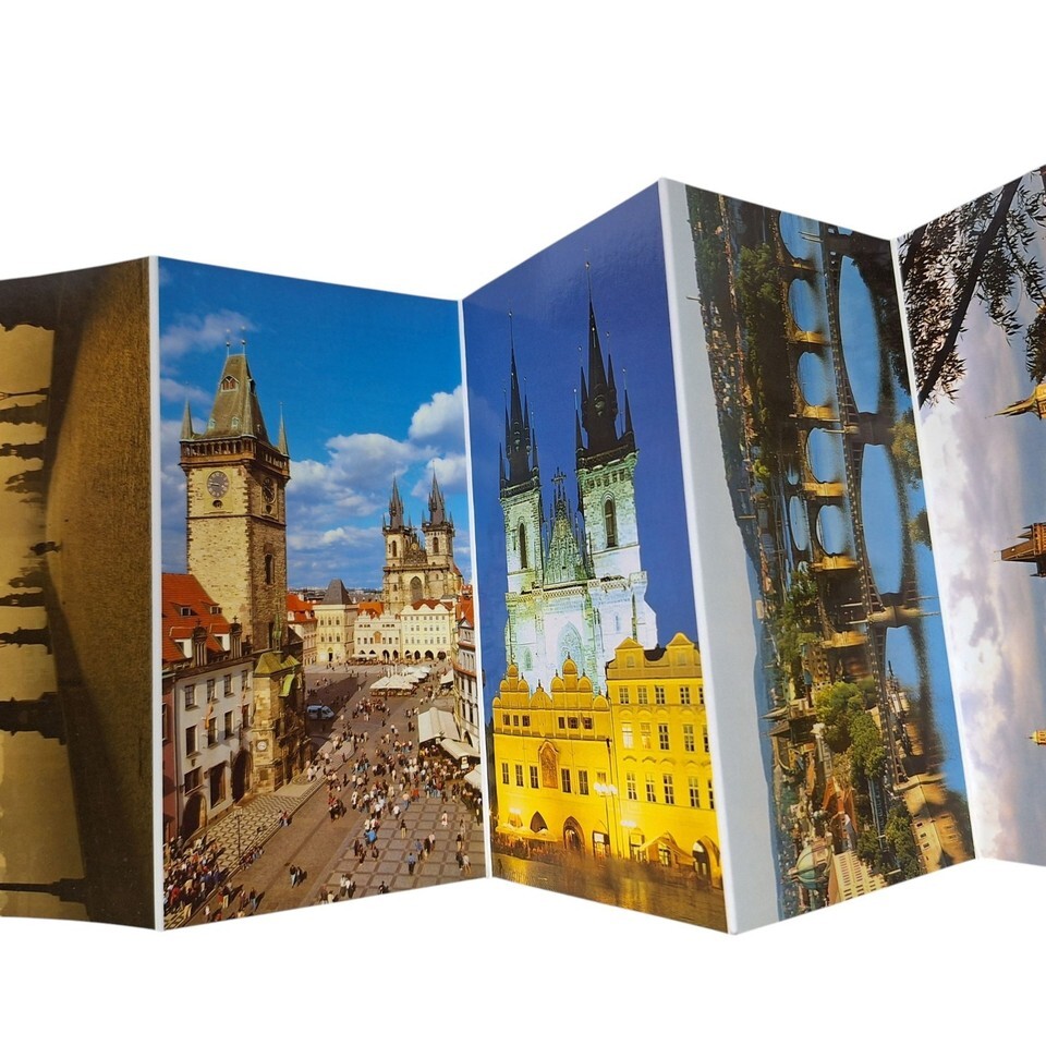 Postcard Folder Prague Czech Town Hall Cathedral Castle Bridge Chrome