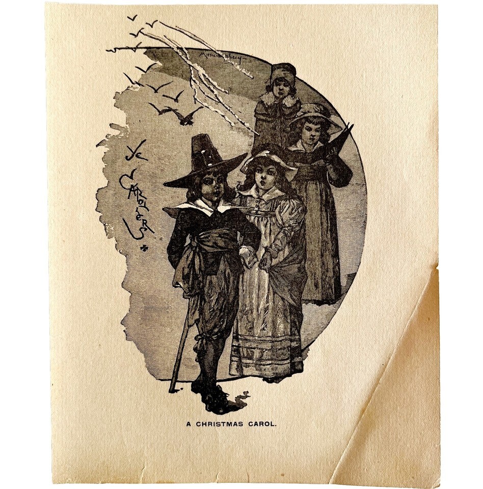 A Christmas Carol 1892 Victorian Art Woodcut Printing Ephemera DWY10B