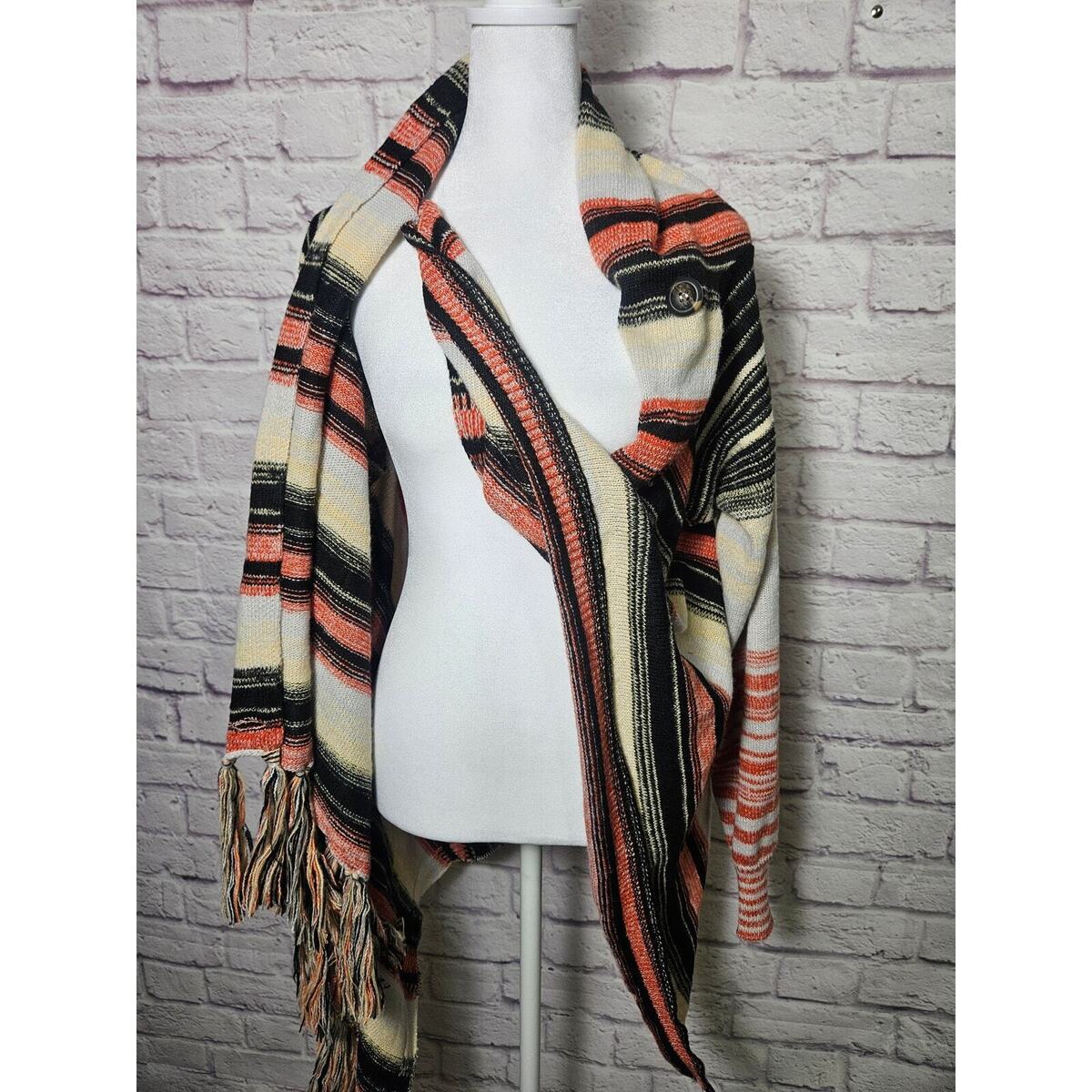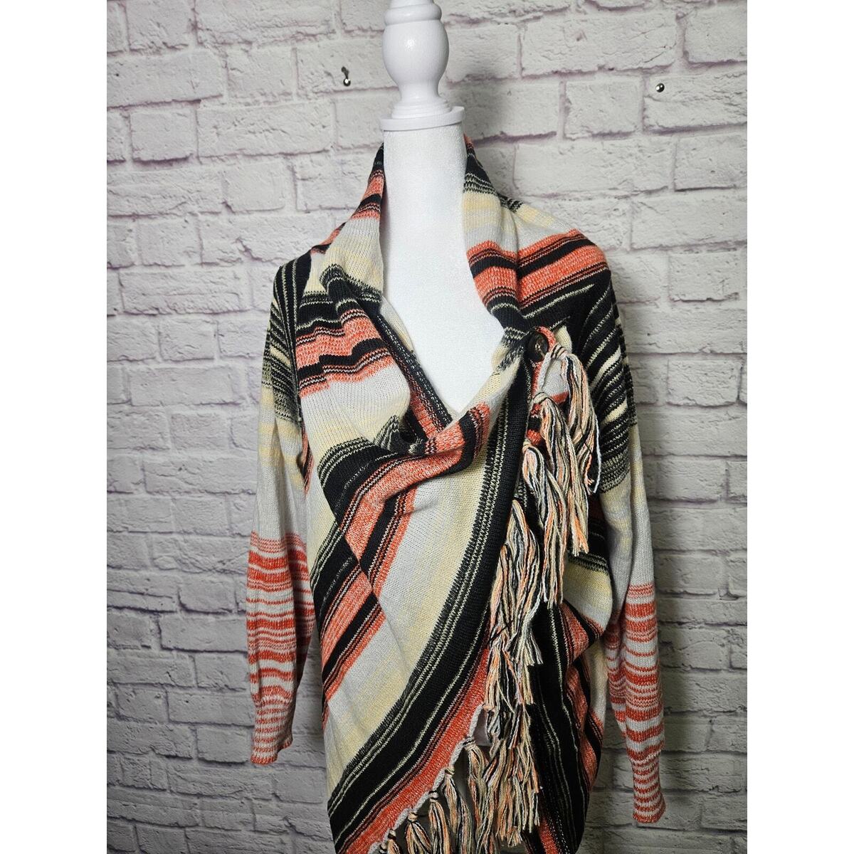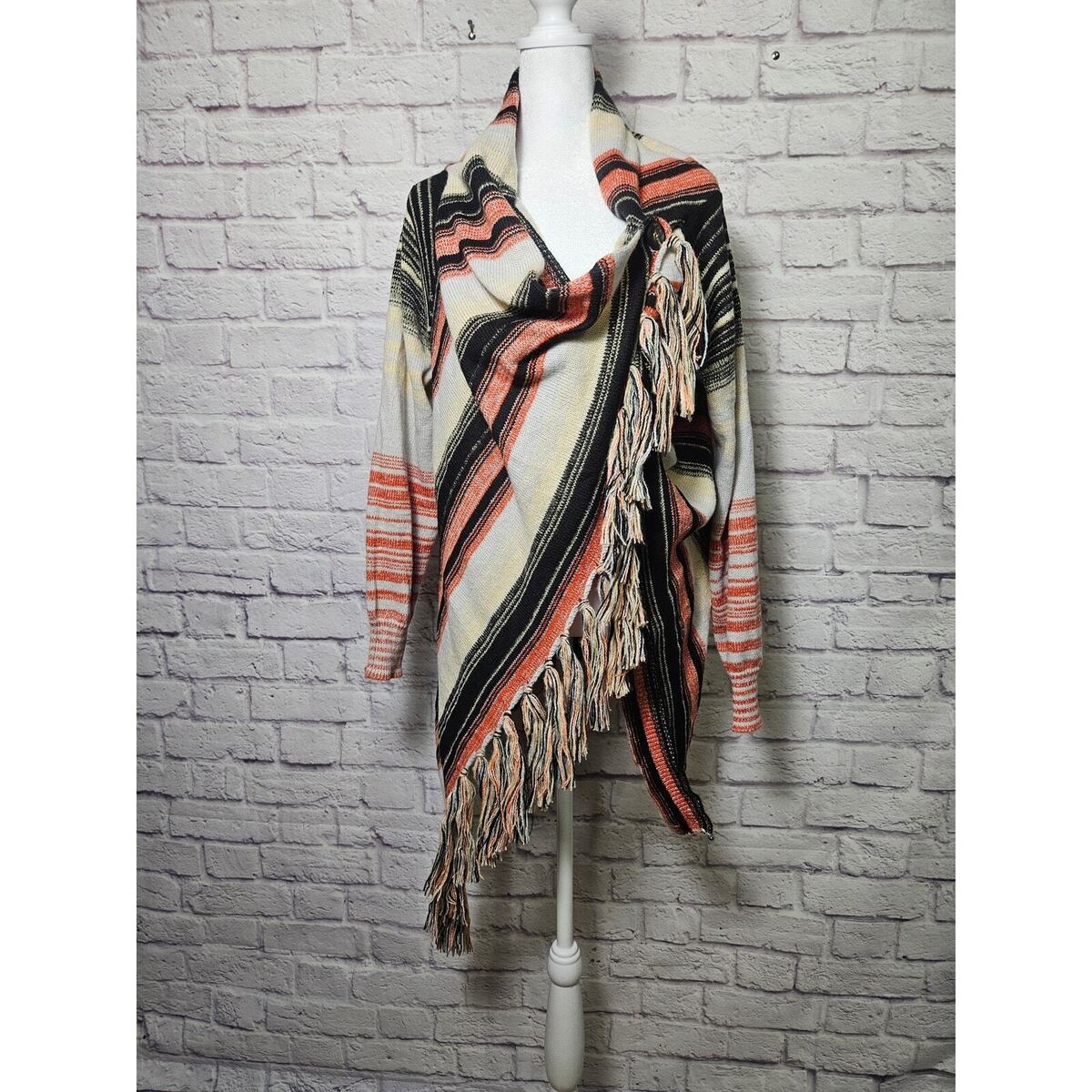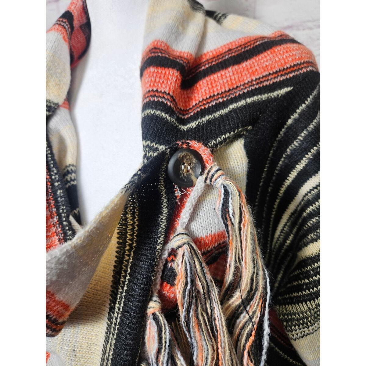 Women's Boho Chic Wrap Cardigan Black Orange Fall Size Large