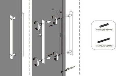 Elevate the aesthetic appeal of your sliding barn door with the Richelieu Hardware Stylish Rustic Style Barn Door Double Handle. Crafted with meticulous attention to detail, this double handle adds a touch of rustic charm to your space while offering practical functionality. With its 11-13/16 inch center-to-center measurement, it provides ample grip and smooth operation for your passage sliding door. Key Features: Rustic Style Design: Enhance the aesthetic appeal of your space with a stylish rustic barn door handle. Double Handle Design: Offers enhanced grip and ease of use for passage sliding doors. Durable Construction: Crafted with precision and attention to detail for lasting durability. Material: Steel for Black and Brished Oil-Rubbed Bronze finish; Stainless Steel 304 for Satin Brass and Stainless Steel finish. 11-13/16 Inch Center-to-Center Measurement: Ensures compatibility with various door sizes. Versatile Application: Suitable for use in rustic or contemporary interiors, adding charm and functionality to any space. Each Set Includes: 2 flat bar handles of 14 in (356 mm) x 1 1/4 in (32 mm) with a projection of 1 11/16 in (43.3 mm) 2 screws of 60 mm for 1 3/8 in (35 mm) to 1 3/4 in (45 mm) door thickness 2 screws of 70 mm for 1 3/4 in (45 mm) to 2 1/8 in (55 mm) door thickness