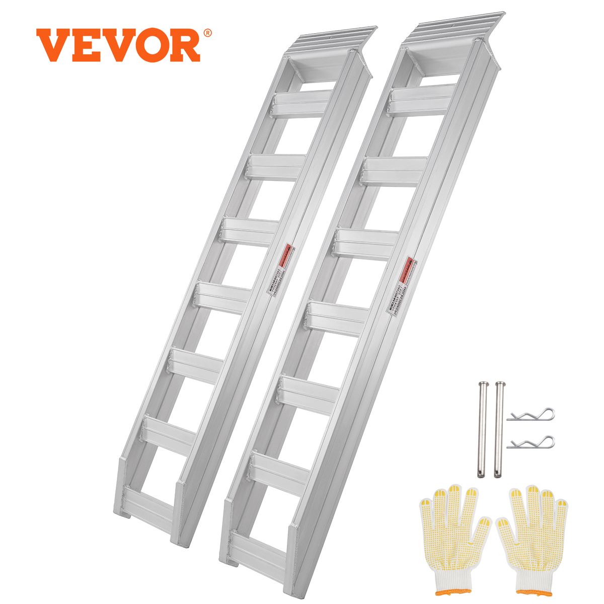 Lightweight but Durable: The VEVOR ramps are the perfect combination of quality and strength. Made from premium aluminum alloy and tested for security, the truck ramps can support up to 8810 LBS while weighing only 60.8 LBS. Transporting your tractors, ATVs, UTVs, motorcycles, or bicycles has never been easier!