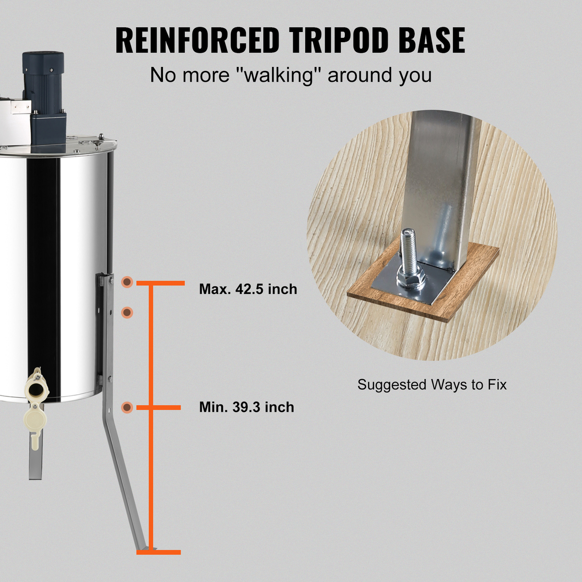 Firmer and Steadier: No more messy shaking! The extractor's height can be adjusted to your desired level, with a range of min. 39.3'' / 100 cm to max. 42.5'' / 108 cm. Keep your floor protected and your extractor easily accessible with legs that can be bolted to a piece of plywood. This feature not only keeps the barrel off the ground for easy draining, but it also allows you to work at a comfortable height.