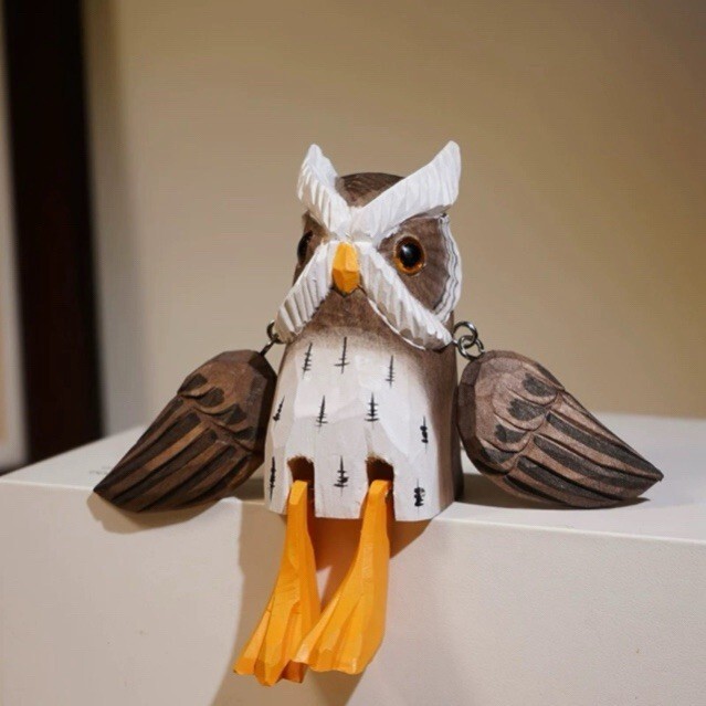 Wooden Owl Figurine, Dangling Legs Decor Cute Animal Ornament