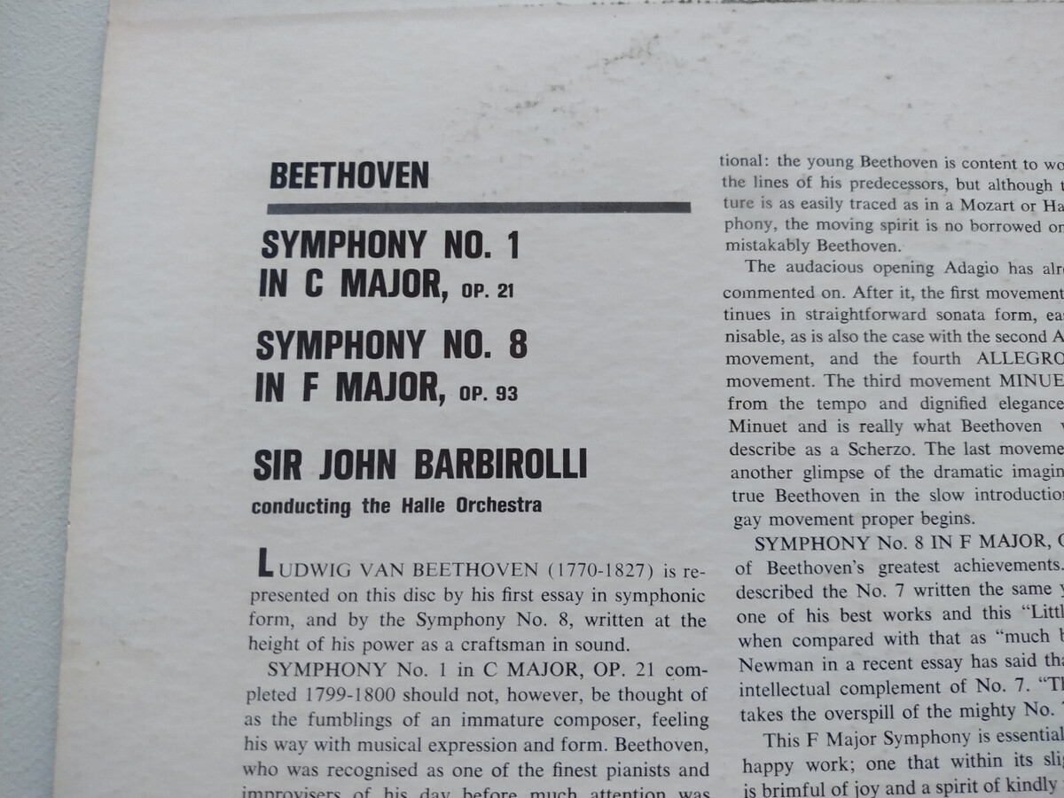 Beethoven Symphony no 1 8 Op 21 93 Barbirolli Srv 146 - LP 12 " vinile VG/VG