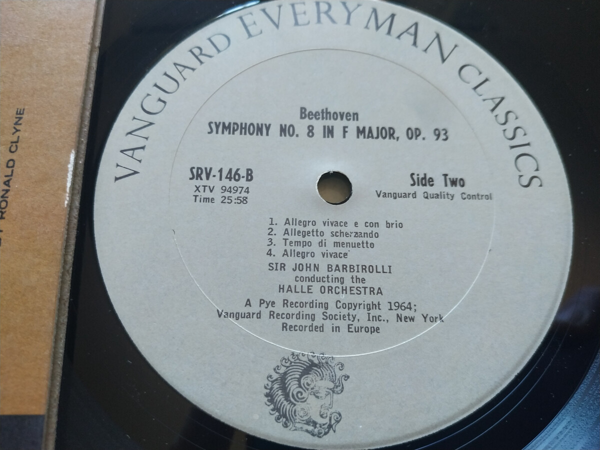 Beethoven Symphony No 1 8 OP 21 93 Barbirolli SRV 146 - LP 12 " Vinile VG / VG