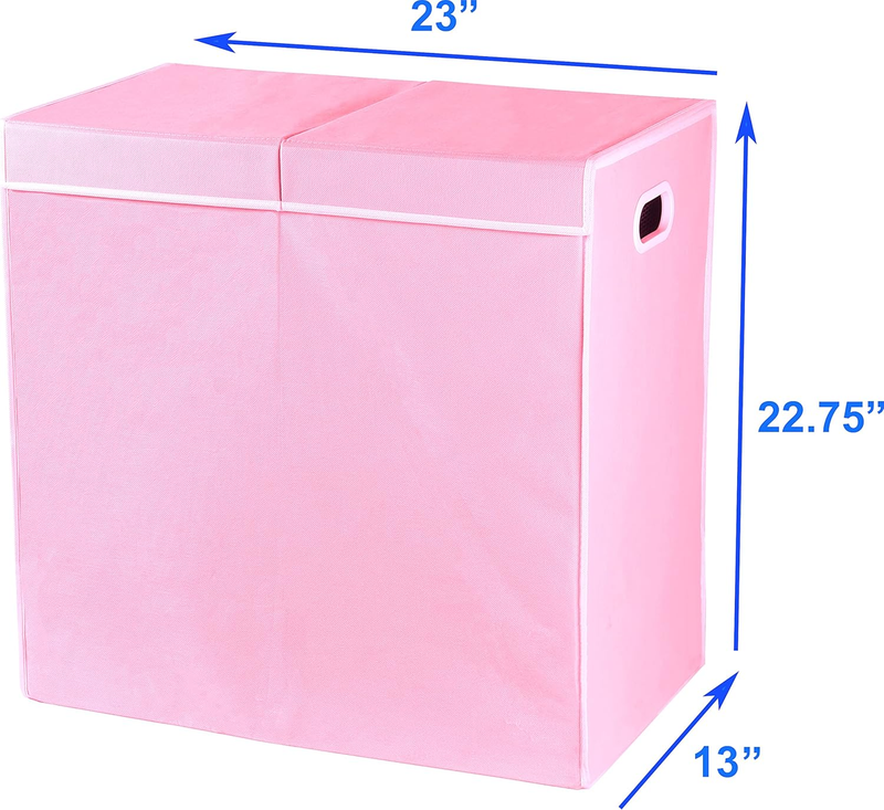 Double Laundry Hamper with Lid and Removable Bags, Pink