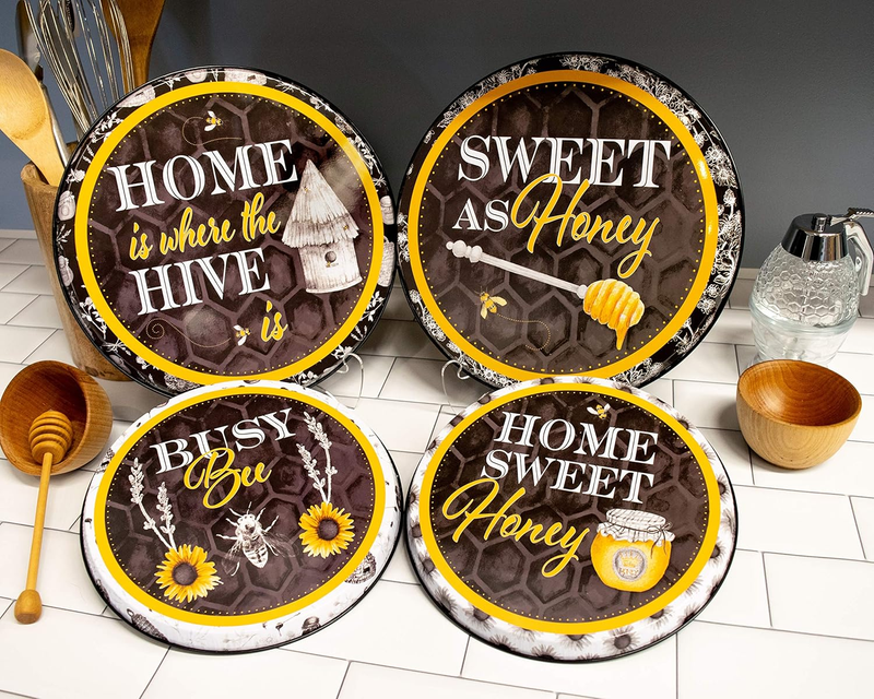 Place these beautiful burner kovers over your cooled heating elements to hide spills and dress up your kitchen. Perfectly complement yellow kitchen themes with these Bee burner covers. They are truly BEEautiful!
