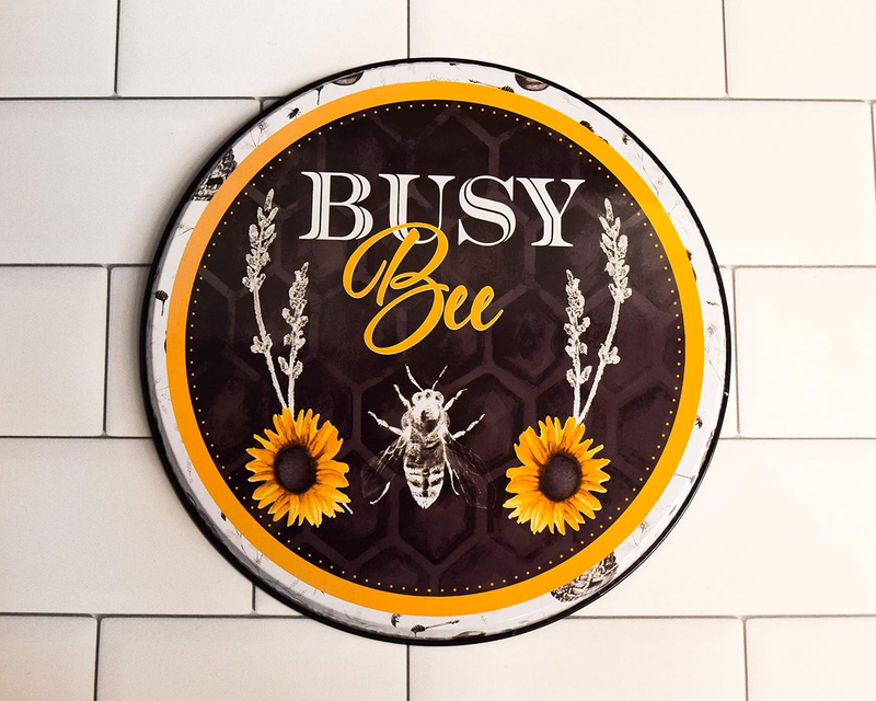 Background is a black and grayscale honeycomb pattern. Complements farmhouse and natural decor styles.