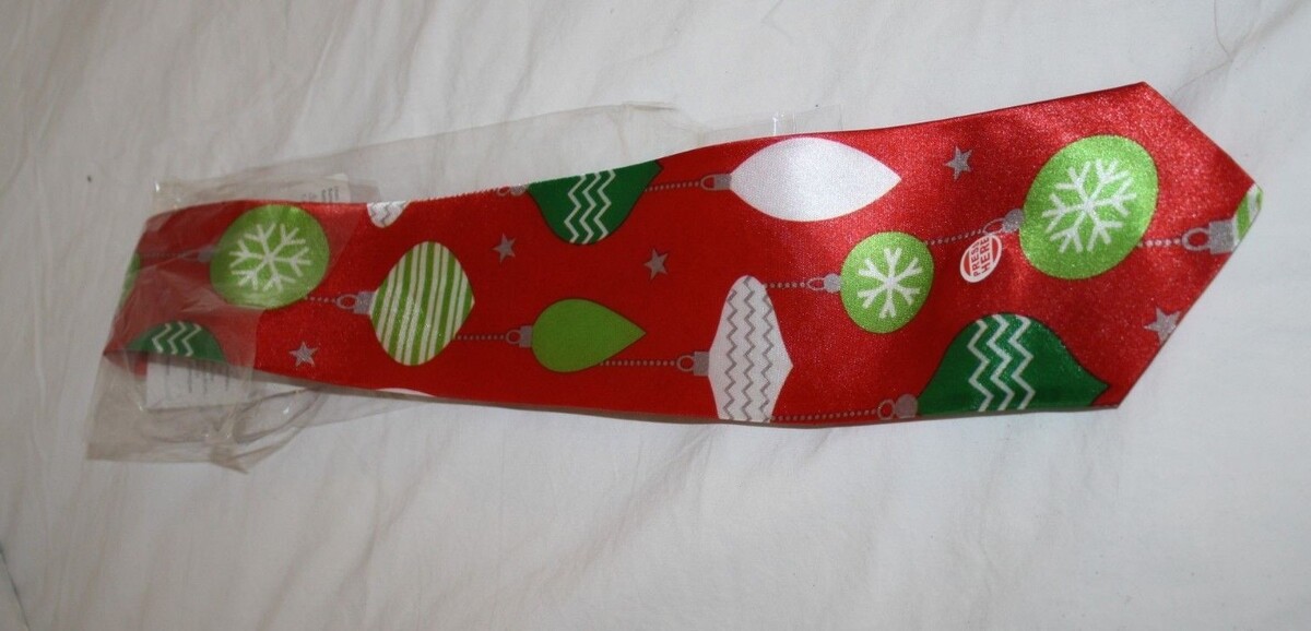 Christmas Red Novelty Mens Tie Jingle Bells Ornaments 54" Red No Musical Sound