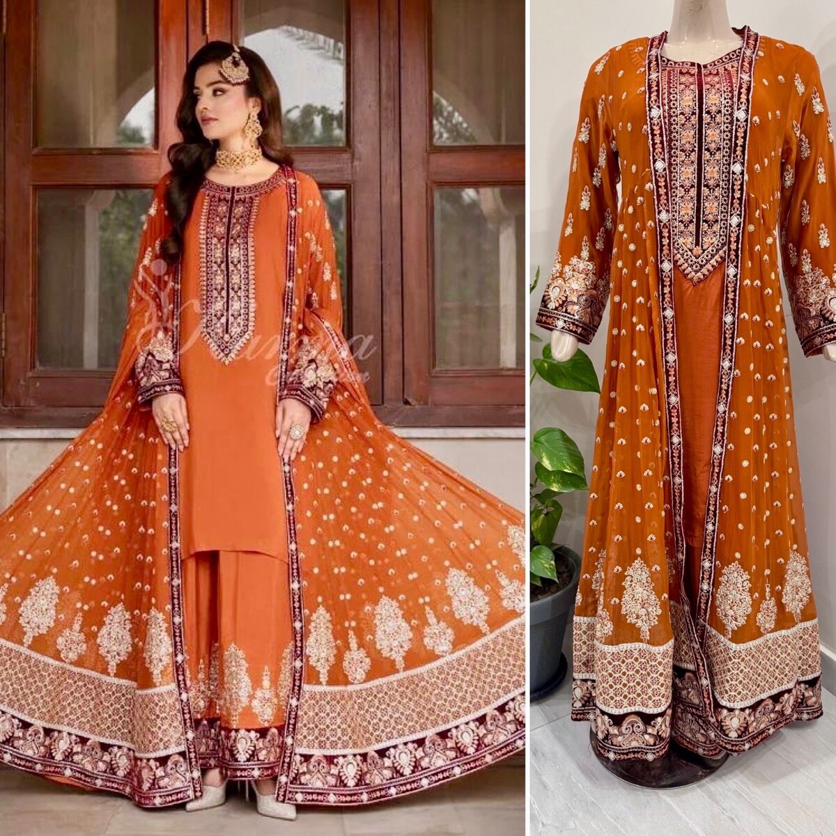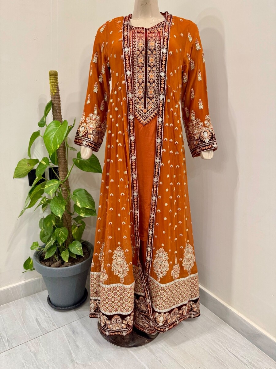 Pakistani Rust chiffon long Gown shirt Style and 50 similar items