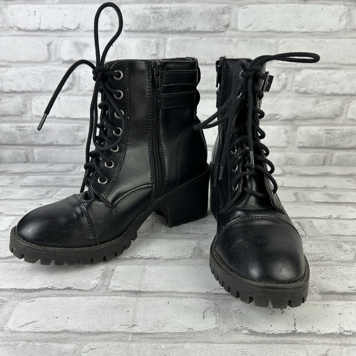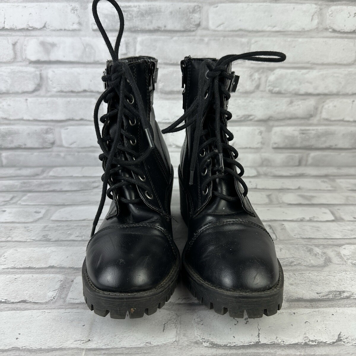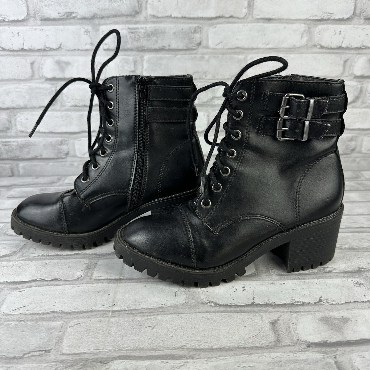 Madden NYC Hazie Boots Women's Sz 6.5M Black Combat Lace-up Zip Grunge Preppy