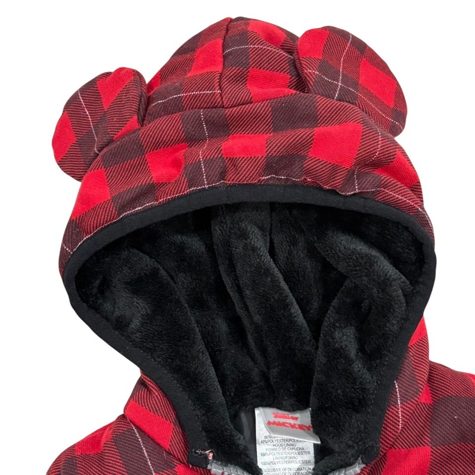 Disney Mickey Mouse Toddler Vest 2T Red & Gray Plaid Hooded Jacket