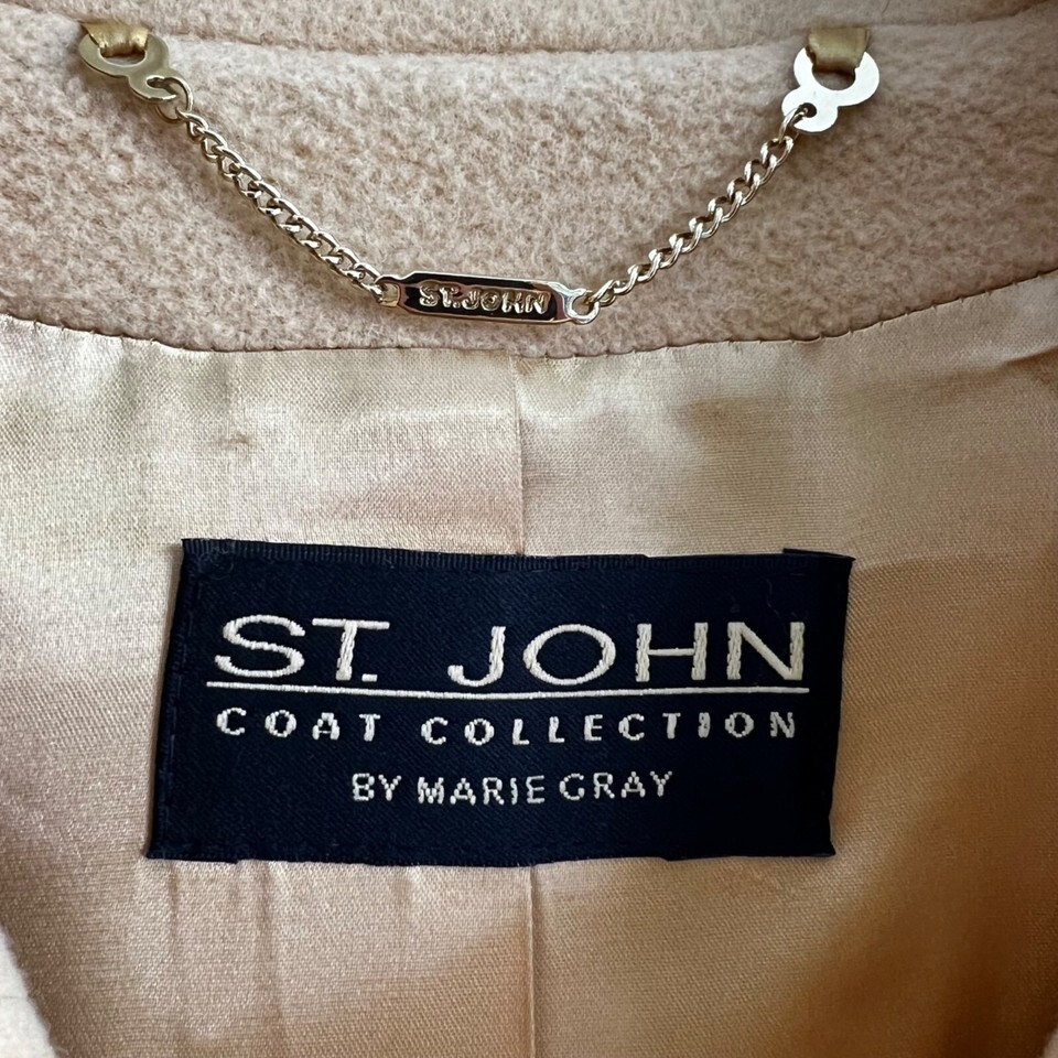 St. John Cashmere Coat Hooded Scarf Long Camel Brown Size 10