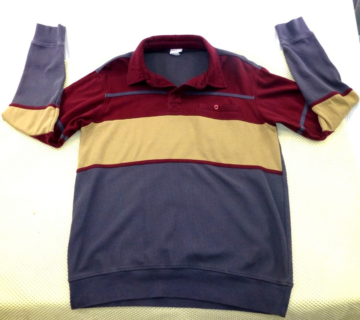 VTG Haband Casual Joe Polo Shirt Mens Large Color Block Long Sleeve
