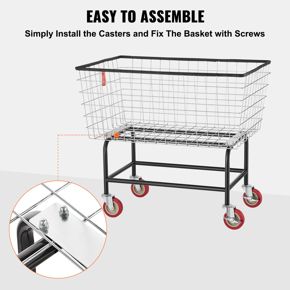 VEVOR Wire Laundry Cart 4.5 Bushel Chrome Steel 5" Casters Commercial Basket