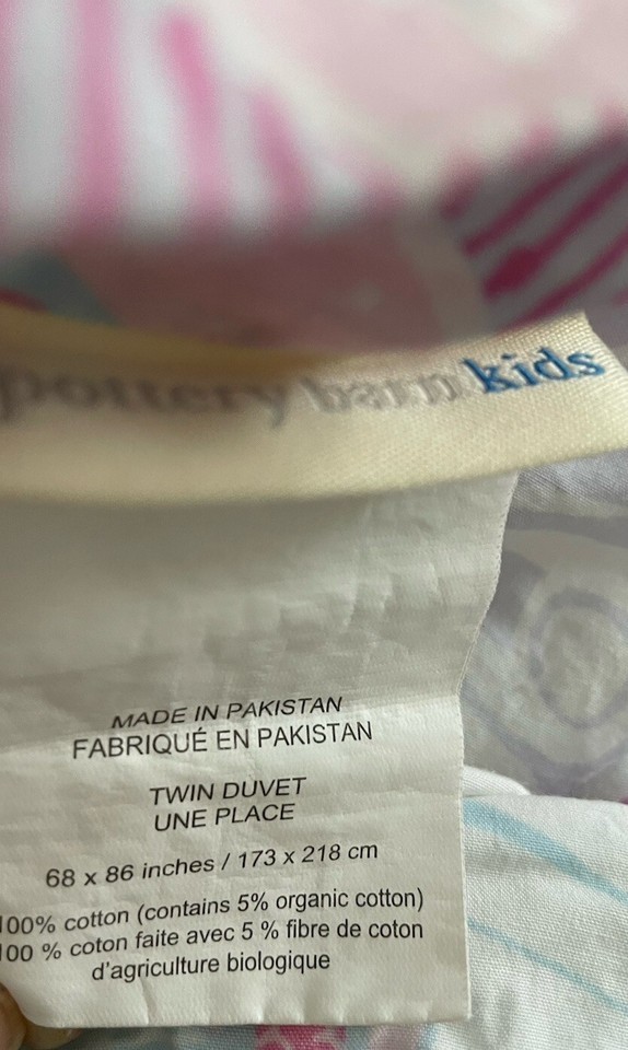 Add a touch of modern style to your child's bedroom with this Pottery Barn Kids duvet cover and flat sheet set. Featuring a fun hot air balloon pattern in multicolor, this set is perfect for girls and kids alike. Made of 100% cotton, the cover is machine washable and easy to care for with tumble dry options available. The set includes a rectangular twin size duvet cover and flat sheet, both adorned with the charming hot air balloon design. The closure type is ties, and the set is perfect for anyone looking for a fun and stylish addition to their child's bedroom.